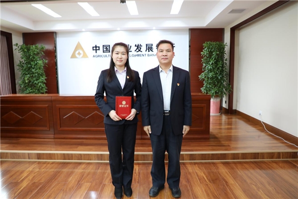 農(nóng)發(fā)行荊州市分行黨委書記、行長王良勇同志為獲獎人員頒獎