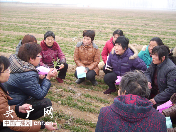 河南安陽滑縣婦聯(lián)邀請農(nóng)業(yè)專家到田間地頭為姐妹們講解講解麥田管理技術。
