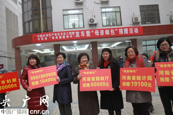 全國(guó)“母親郵包”項(xiàng)目是中國(guó)婦女發(fā)展基金會(huì)推出的又一個(gè)服務(wù)于農(nóng)村貧困婦女的大型公益項(xiàng)目。2012年10月正式在河南啟動(dòng),截至目前,省直單位捐款11萬(wàn)元,地市捐款14萬(wàn)元,目前各地還在捐助中。(攝影 白周峰)
