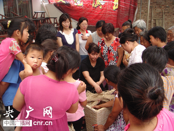 河南省商丘市婦聯(lián)駐村工作隊請專人教村里的婦女學習手編技術(shù)