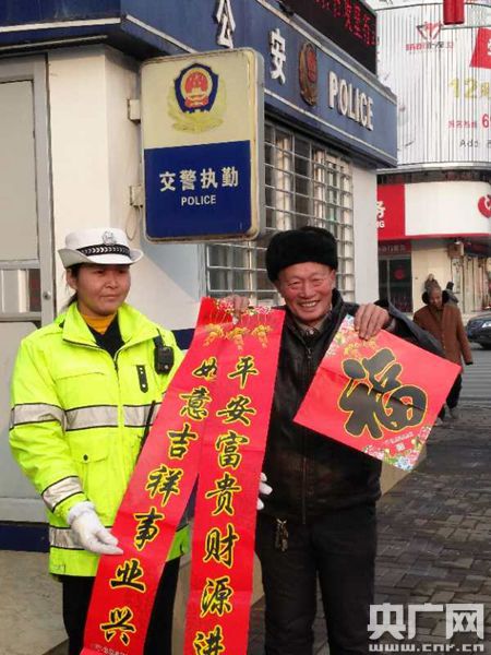 1月18日,西峽交警大隊(duì)紫金崗?fù)っ窬瘞е喾鶎?duì)聯(lián)以及交通安全宣傳彩頁在白羽路附近展開了送春聯(lián)活動(dòng)。