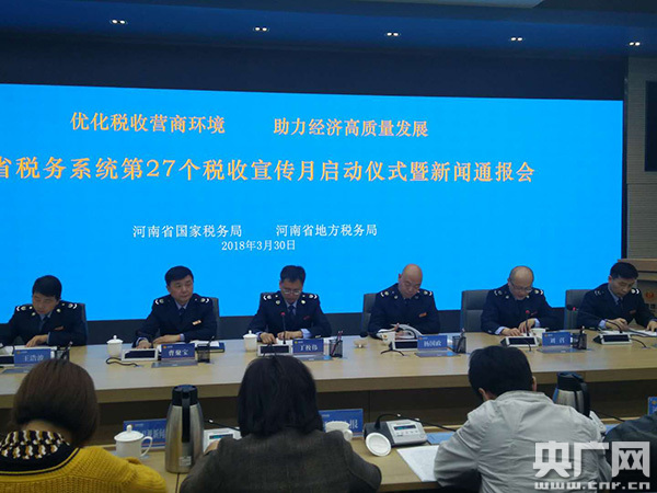 3月30日,河南省稅務(wù)系統(tǒng)第27個稅收宣傳月啟動儀式暨新聞通報會現(xiàn)場