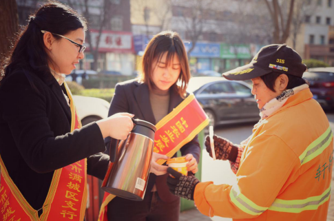 3月6日,農(nóng)發(fā)行保定市滿城區(qū)支行的青年員工走上街頭,為烈陽和寒風(fēng)中默默工作的清潔工人、奔波于大街小巷的快遞小哥和駐守在小區(qū)門外的保安人員,這些常年工作在室外的的勞動(dòng)者們送去了一杯熱乎乎的奶茶和暖暖的愛心,奏響了一曲“奉獻(xiàn)、有愛、互助、進(jìn)步”的雷鋒精神贊歌。