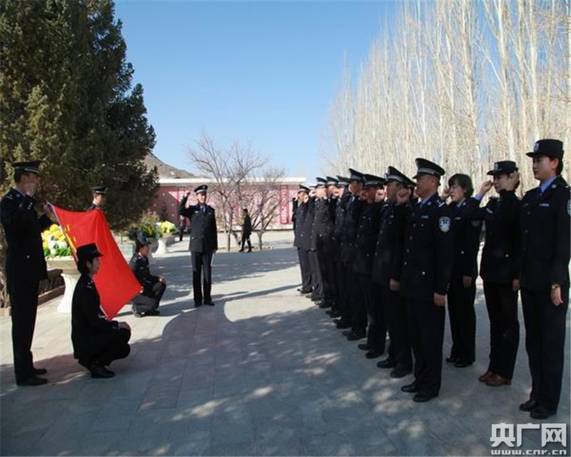馮慶勝帶領(lǐng)伊吾縣公安局全體黨員重溫入黨誓詞