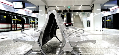 昨天中午,地鐵會展中心站負(fù)二層,幾條候車座椅已經(jīng)安裝到位,座椅為金屬材質(zhì),既結(jié)實耐用又利于打掃!∴嵵萃韴笥浾 馬健 圖