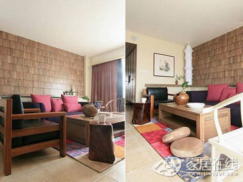 整個(gè)空間的主調(diào)都控制在原生態(tài)實(shí)木的寧?kù)o氛圍中,粗獷的長(zhǎng)凳、簡(jiǎn)約的茶幾、大氣又實(shí)用的沙發(fā),這些看似不同風(fēng)格不同路線的家居物品在品海和皓月的“江南”雅集中都顯得那么的和諧與相稱。