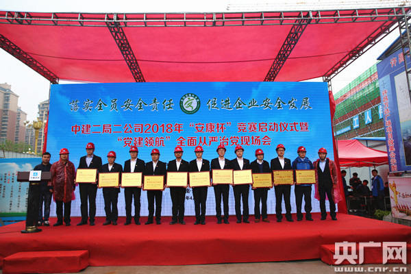 在“安康杯”競賽啟動儀式上,公司安全總監(jiān)張國強首先對2017年“安康杯”競賽活動情況和2018年工作計劃進行了總結(jié),并指出安全是企業(yè)發(fā)展的基本保障和前提,健康是職工工作的基本需求和權(quán)益。公司正式啟動“行為安全之星”活動并播放了《中國建筑“行為安全之星”活動宣傳片》及公司安康建設(shè)工作視頻。活動還分別為河南省和局2017年度安康杯競賽先進集體和個人、公司2017年度優(yōu)秀青年安全生產(chǎn)示范崗、2018年青年安全生產(chǎn)示范崗創(chuàng)建集體進行了頒獎和授牌。此外,西北分公司組織了安全文化建設(shè)表演,并制作播放《囑托》視頻,敲響安全警鐘,最后全體人員進行了安全宣誓。