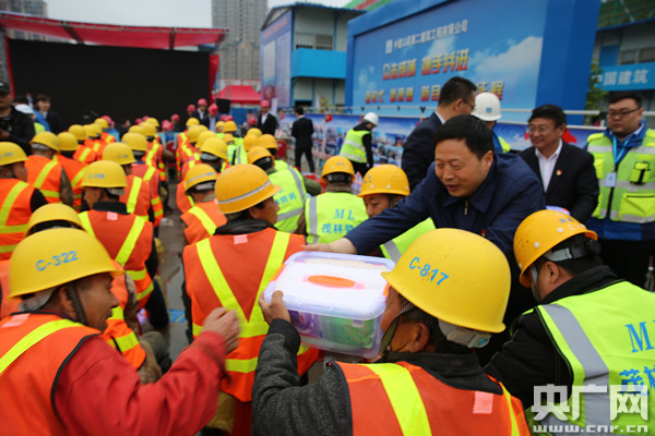 與會領(lǐng)導(dǎo)還集體為工友送去安康大禮包并對現(xiàn)場進行了安全巡查。