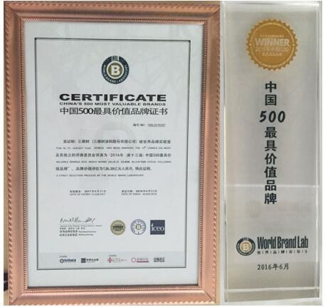 由世界品牌實(shí)驗(yàn)室主辦的“世界品牌大會”于6月22日在北京舉行,會上發(fā)布了2016年(第十三屆)《中國500最具價(jià)值品牌》分析報(bào)告。在這份基于財(cái)務(wù)、消費(fèi)者行為和品牌強(qiáng)度的監(jiān)測報(bào)告中,三棵樹第十次榮登“中國500最具價(jià)值品牌排行榜”,品牌價(jià)值126.38億元。比上一年度品牌價(jià)值大漲33.44億元。