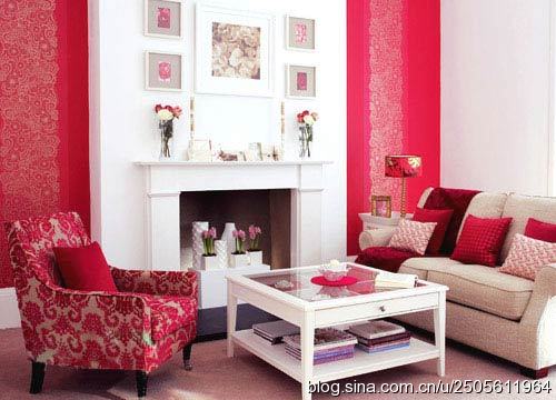 紅色的印花壁紙,圖案的裝飾效果更加突現(xiàn),紅色、米色沙發(fā)讓客廳彰顯出主人的熱情。