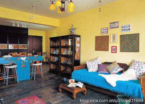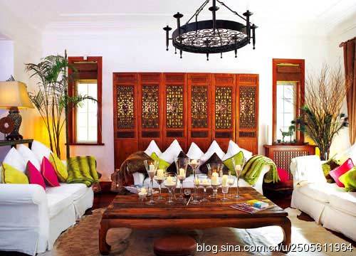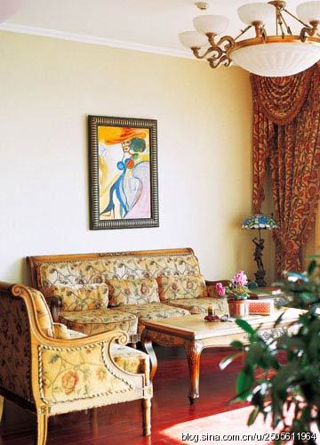 客廳是中西合璧的,既有傳統(tǒng)的中式家具,又有寬大舒適的西式沙發(fā)。
