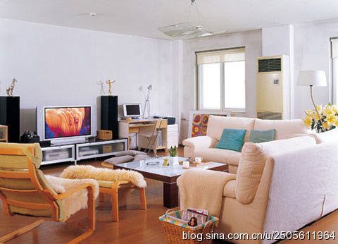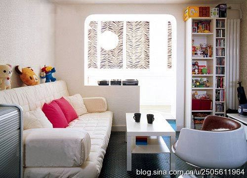 白色的大面積使用,在視覺效果上擴(kuò)大了空間的面積。線條簡單的白色家具,使整個客廳顯得整潔、利落。