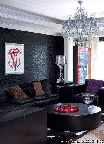 紅色的裝飾畫與茶幾擺件令一味的黑色出離了沉重感。