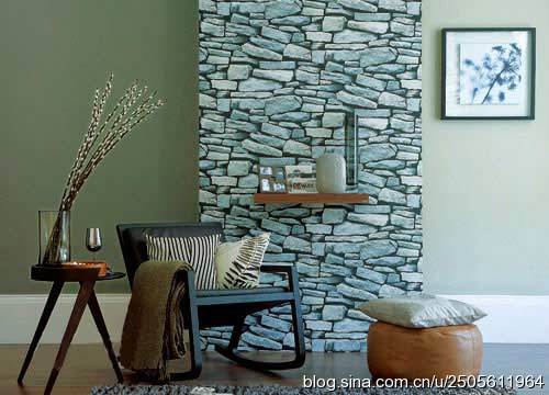 模仿毛皮、木材或者石頭紋樣的壁紙,隱藏方式固定的層板和精心挑選的花瓶,都為墻面增添視覺焦點(diǎn)。