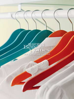 使用不同顏色的衣架在衣櫥內(nèi)串起一道亮眼的彩虹。采用以色彩標(biāo)記的方式整理衣櫥,最基本的做法是按衣服的款式、季節(jié)、穿著者,使用不同顏色的衣架掛衣服。