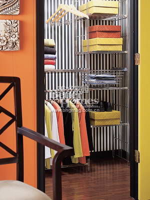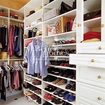 為你的衣帽間量身定制一套合金材質(zhì)的掛衣裝置吧,其中包括雙層掛衣架、推拉式收納筐、鞋架和可調(diào)節(jié)的架子。合金材質(zhì)衣架的最大好處在于不占空間,而且便于安裝。
