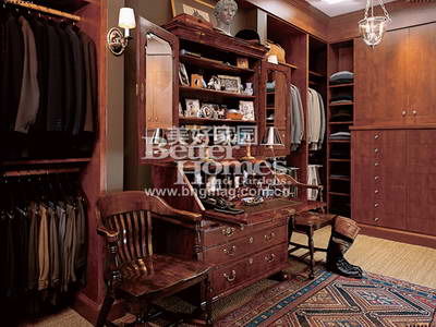 男士的衣帽間也要注重風(fēng)格的布置和男主人個性的表現(xiàn)。較低的抽屜可用于存放睡衣褲、平腳褲等,柜子的抽屜或收納筐放置伸手可得的小物件,閑置的架子上可放些照片、精致的洗漱用具裝飾一番,讓衣帽間在實用的基礎(chǔ)上也展現(xiàn)一下男主人的生活品位。
