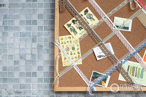 對于一款用舊了的畫框,最好的歸宿,不是垃圾箱,而是巧手下的新生。在原本的鏡框里面,鋪上一張鏡框大小的軟木,用各種花邊帶做編織后,就成就了這款縱橫交錯(cuò)的卡片鏡框。隨著心情不同而隨時(shí)更換新的卡片和絲帶。 格子裝飾