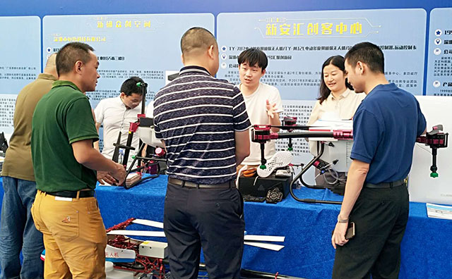 展區(qū)云集行業(yè)大咖、前沿科技產(chǎn)品,充分展示寶安雙創(chuàng)工作開展的盛況及成果。天鷹兄弟M12多旋翼植保無人機(jī)、D10多旋翼植保無人機(jī)和TY-787單旋翼植保無人機(jī)亮相寶安分會場,展示農(nóng)業(yè)無人機(jī)領(lǐng)域創(chuàng)新成果。