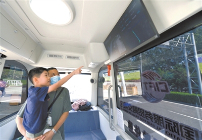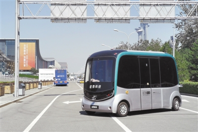 無人駕駛 暢想未來,正在北京舉行的2020年中國國際服務貿(mào)易交易會集中展示了國內(nèi)外知名高新技術企業(yè)研發(fā)的前沿科技成果,促進新技術、新產(chǎn)品、新服務的市場應用,讓觀眾感受高科技帶來的無限可能。上圖 在展會特別開辟的無人駕駛體驗區(qū)內(nèi),馭勢科技自主研發(fā)的新一代無人駕駛小巴為中外賓客提供接駁服務。