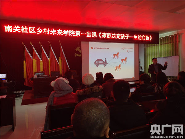 央廣網(wǎng)平頂山12月25日消息(記者 汪寧 通訊員 馮琳軻 丁亞偉 楊俊英)為提高社區(qū)家庭教育水平,幫助轄區(qū)居民探索正確的家庭教育方法,讓每一位孩子健康快樂(lè)成長(zhǎng),近日汝州市洗耳河街道南關(guān)社區(qū)鄉(xiāng)村未來(lái)學(xué)院的“開(kāi)學(xué)第一課”——《家庭決定孩子一生的底色》在家長(zhǎng)們熱烈的掌聲中拉開(kāi)帷幕。