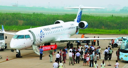 中廣網(wǎng)河南分網(wǎng)消息 據(jù)河南日報報道:8月2日15時50分,由重慶飛往洛陽的CRJ900型飛機搭載著65名乘客緩緩降落在洛陽機場。今后,洛陽至重慶、洛陽至成都、洛陽至杭州航線由84座的CRJ900型飛機替換原有的48座CRJ200型執(zhí)飛,標志著洛陽機場告別50座以下的“小飛機”。張藝馨 攝