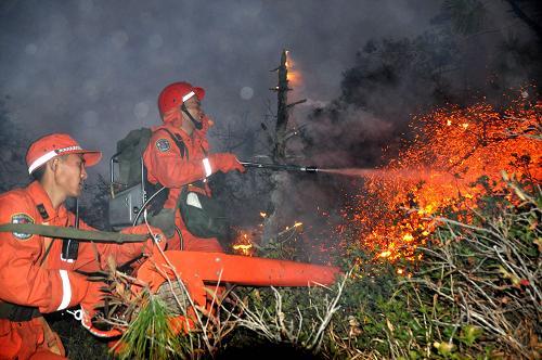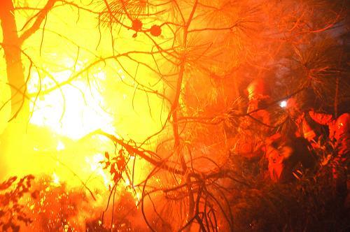 武警涼山森林支隊(duì)官兵在奮力撲火。新華社發(fā)(程雪力攝)