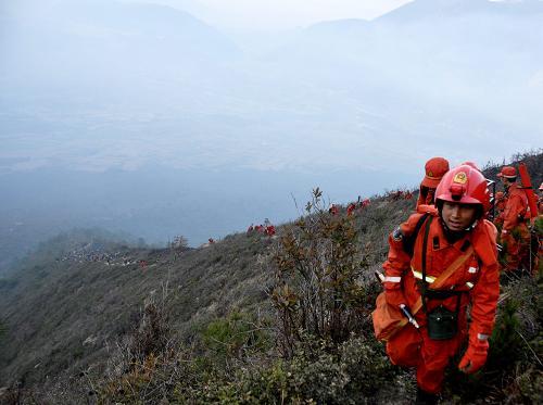 2月16日,武警涼山森林支隊(duì)官兵在火場(chǎng)進(jìn)行。新華社發(fā)(程雪力攝)