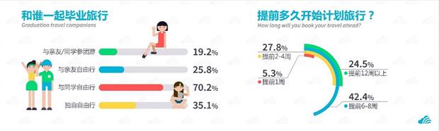 在旅行行為方面,95后學生群體的出行方式并非無節(jié)制消費,反而更注重出行的性價比,善于提前規(guī)劃行程,提前做好旅行攻略。根據(jù)調查顯示,70.2%的學生希望畢業(yè)旅行能與同學一起自由行,但仍有35%的同學選擇獨自旅行,向人生另外一個階段邁進。在預訂機票方面,有24.5%的大學生提前12周就開始“緊盯”機票價格走勢,適時購買低價機票。而根據(jù)天巡此前針對全球出境游客的預定周期調查發(fā)現(xiàn),中國普通游客預定周期僅僅提前40天。而95后出境旅行預定提前了8-12周,說明了95后大學生旅行出行方式越來越成熟,出境度假概念越來深化。