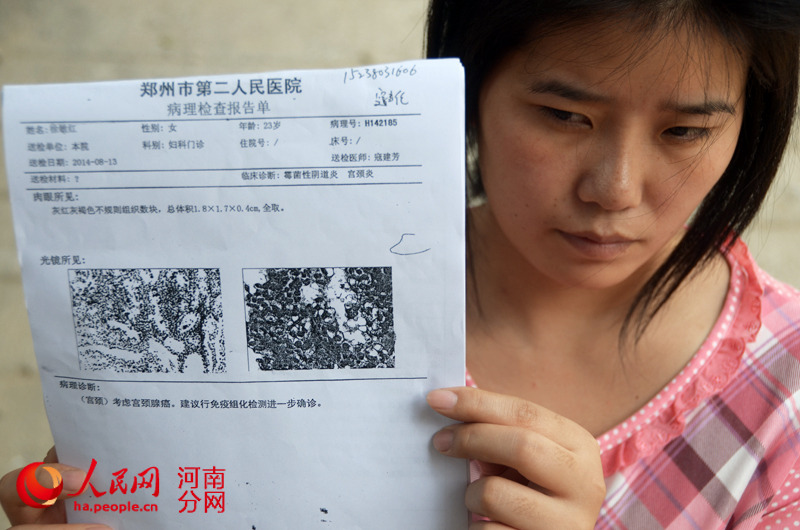 23歲的徐敏紅向記者展示醫(yī)院病理檢查報(bào)告單