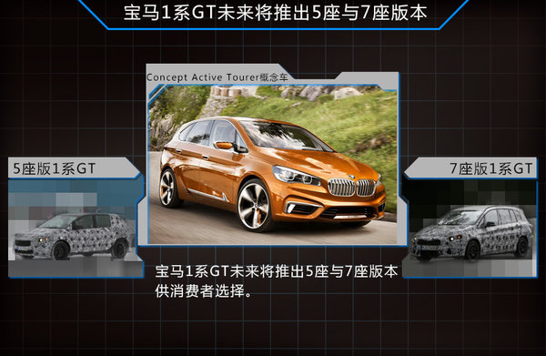 寶馬曾在2012年巴黎車(chē)展期間亮相了一款Concept Active Tourer概念車(chē),未來(lái)寶馬1系GT將以這款車(chē)型為藍(lán)本進(jìn)行打造,此外在今年的廣州車(chē)展上,該車(chē)也正式在國(guó)內(nèi)亮相。隨著明年3月6日即將開(kāi)幕的日內(nèi)瓦車(chē)展的臨近,寶馬也將攜1系GT等多款車(chē)型參展,屆時(shí)這款全新車(chē)型將首次亮相,也使寶馬GT家族的車(chē)型增至為3款。
