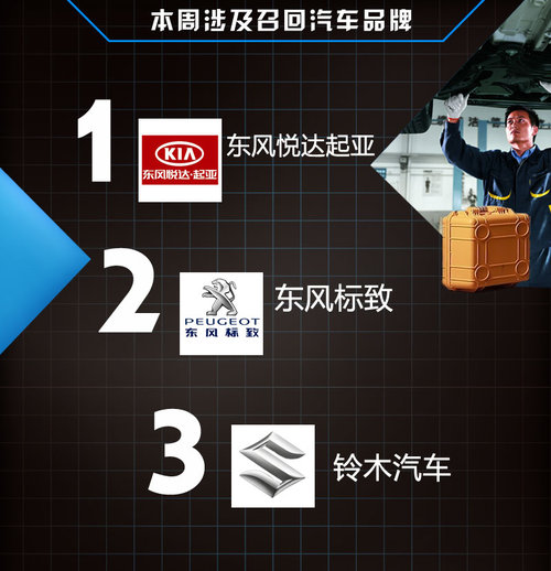 從上表中我們可以看出,在國內(nèi)汽車市場方面,本周有東風(fēng)悅達(dá)起亞、東風(fēng)標(biāo)致兩家合資車企向國家質(zhì)檢總局提交召回報(bào)告,對(duì)旗下存在安全隱患的車型進(jìn)行召回。在海外方面則是鈴木汽車因故障或者隱患,對(duì)車輛進(jìn)行檢修或者更換零部件,下面就讓網(wǎng)通社帶您具體了解下相關(guān)品牌車型中所出現(xiàn)的具體隱患以及相應(yīng)的召回情況。