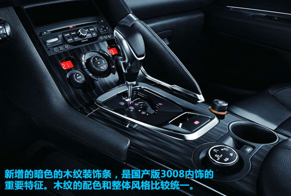 內飾方面,東風標致3008沿用了進口版本的整體設計,資料圖中的車型采用了全黑色的深色內飾,細節(jié)部分點綴有鍍鉻裝飾。與進口版有所不同,國產(chǎn)后的東風標致3008中控臺的面板采用了深色的木紋裝飾,這應該是針對國人口味而做出的調整。深色的木紋與同樣深色的內飾風格一致,并不突兀。