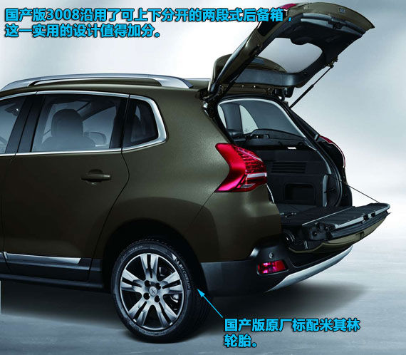 兩段式開啟的后備廂蓋在東風標致3008得以保留,如此的設計非常實用,提升取物的便利性。