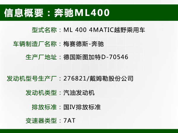 央廣網(wǎng)河南分網(wǎng)消息 據(jù)網(wǎng)通社報(bào)道:奔馳在2013年9月推出旗艦車型全新S級(jí),新車搭載了型號(hào)為M276的3.0T雙渦輪增壓引擎。而對(duì)于奔馳現(xiàn)在唯一一款搭載3.5L自然進(jìn)氣引擎的奔馳ML而言,搭載更小排量的增壓引擎已經(jīng)成為一個(gè)趨勢(shì)。近日網(wǎng)通社從國(guó)家環(huán)境保護(hù)部了解到:奔馳ML將推出一款搭載3.0T雙渦輪增壓發(fā)動(dòng)機(jī)的車型,新車將命名為“ML400”。與目前的引擎序列相比,更小的排量有助于減小尾氣排放,且根據(jù)中國(guó)市場(chǎng)的消費(fèi)稅率3.0T引擎將小幅降低這款車型的稅額。