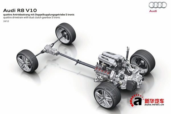 為了增加車輛的駕駛樂(lè)趣,常規(guī)狀態(tài)下奧迪R8的四驅(qū)系統(tǒng)前后軸的動(dòng)力輸出比例為15:85,當(dāng)后輪出現(xiàn)打滑時(shí)前輪最大可獲得30%的動(dòng)力,奧迪R8盡管是一臺(tái)四驅(qū)超跑,但是為了提升駕駛樂(lè)趣,它的整體設(shè)定依然傾向于后輪驅(qū)動(dòng)。