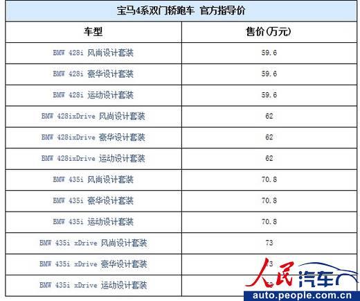 全新寶馬4系雙門(mén)轎跑上市 售59.6萬(wàn)-73萬(wàn)元
