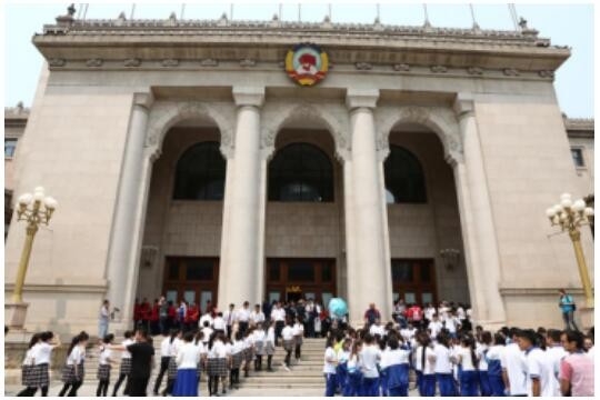 全國政協(xié)禮堂外排隊等候入場的觀眾