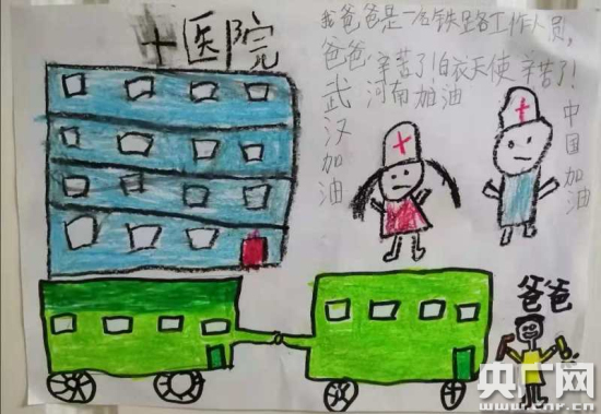 央廣網(wǎng)鄭州3月18日消息 “我爸爸是一名鐵路工作人員,爸爸辛苦了,白衣天使辛苦了,河南加油!武漢加油!中國(guó)加油!”這是鄭州北車(chē)輛段南陽(yáng)西動(dòng)用車(chē)間黨總支書(shū)記于智勇的女兒用微信發(fā)給他一幅手工畫(huà)上的文字,文字下面是:白衣天使們將要向醫(yī)院奔去;一位爸爸面向火車(chē)做出守護(hù)姿勢(shì)。于書(shū)記深情默默地注視了好一陣子,不免有些心酸。