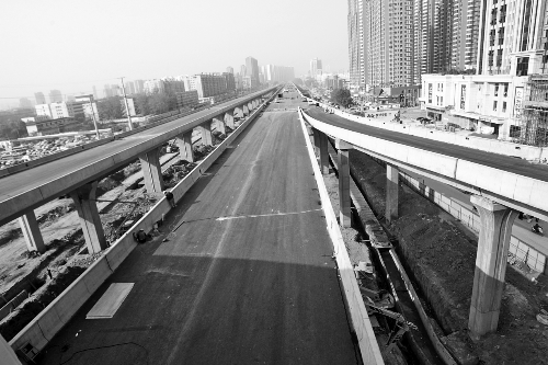 北三環(huán)高架橋文化路以西已鋪好瀝青 記者 白周峰 攝影