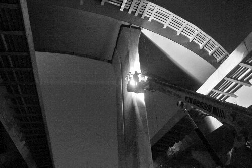 凌晨3點寒風(fēng)中,北三環(huán)高架橋下,工人仍在忙碌著。首席記者 陳曉東 攝影