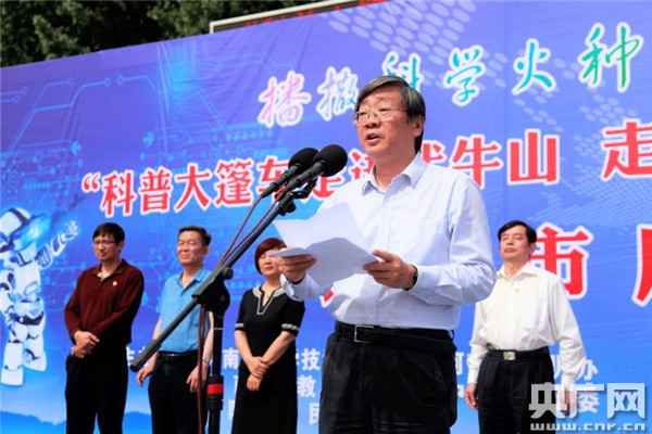 科普大篷車走進伏牛山走進貧困縣”科技志愿服務(wù)活動啟動現(xiàn)場(央廣網(wǎng)發(fā) 通訊員 王紅松供圖)
