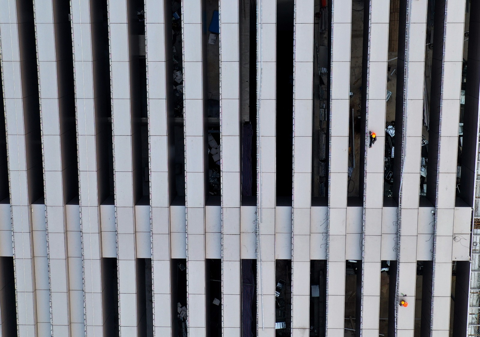 市民活動(dòng)中心的外幕墻已近入最后的收尾階段