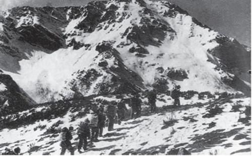 紅1團(tuán)楊得志回憶道:“這里氣候多變,反復(fù)無常,明明是太陽當(dāng)頭,萬里無云,一陣急風(fēng)便攪得雪霧彌漫,使人頭昏眼花。這樣寒冷的氣候和神話般的情景,不要說盛夏六月,十冬臘月在南方也是絕對(duì)沒有的!