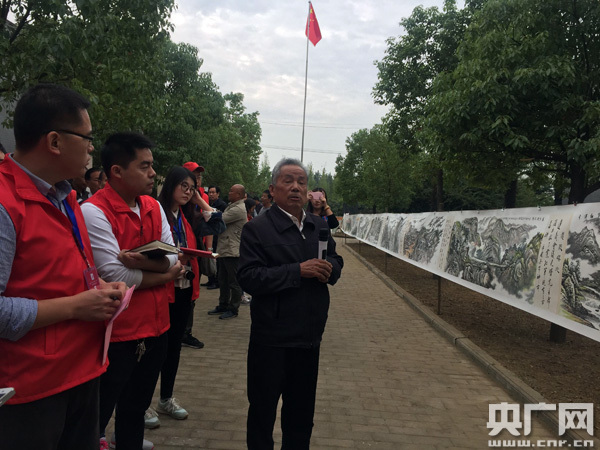 一大早,采訪團(tuán)來到南陽市南召縣曹店村,參觀中共南召縣第一支部舊址。在現(xiàn)場(chǎng),一幅長(zhǎng)約36米的字畫《紅軍不怕遠(yuǎn)征難》引人注目。畫卷長(zhǎng)36米,重20余斤,耗時(shí)8個(gè)月,勾勒了紅軍四渡赤水、飛奪瀘定橋等10個(gè)場(chǎng)景畫面,每一幅畫還精心配詩(shī)一首。戰(zhàn)斗畫面激蕩人心,紅軍形象栩栩如生,軍民之情真摯飽滿,讓人驚嘆不已。