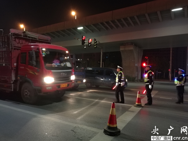 央廣網(wǎng)河南分網(wǎng)11月15日消息 (本網(wǎng)特別報(bào)道組)11月14日晚上十一點(diǎn)左右,鄭州、洛陽(yáng)、開封、安陽(yáng)、鶴壁、新鄉(xiāng)、焦作、濮陽(yáng)、三門峽、商丘市等交警支隊(duì)異地用警開展嚴(yán)查城市工程運(yùn)輸(渣土)車交通違法行為集中統(tǒng)一行動(dòng)。