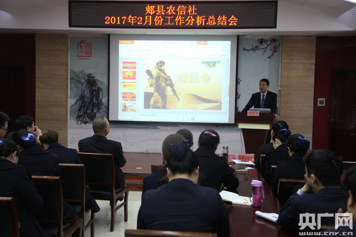 央廣網(wǎng)河南分網(wǎng)消息 3月14日上午,郟縣聯(lián)社召開(kāi)2017年2月份工作分析總結(jié)會(huì),聯(lián)社領(lǐng)導(dǎo)班子,各部門經(jīng)理、信用社主任、會(huì)計(jì)、網(wǎng)點(diǎn)負(fù)責(zé)人、部分大堂經(jīng)理和小微信貸客戶經(jīng)理共150余人參加會(huì)議。