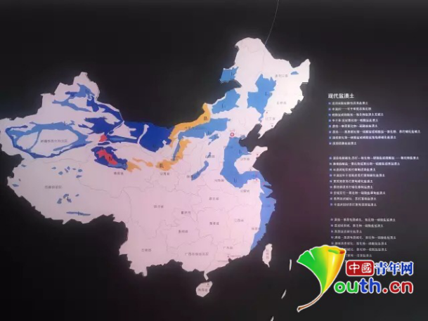 這張懸掛著的地圖時刻提醒著我們:中國內陸有近15億畝鹽堿地啊!這些地如果沒有被充分地利用,將是多么大的一個損失!