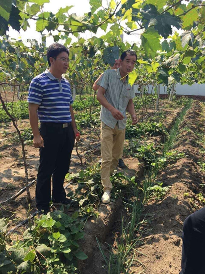 圖片說(shuō)明:陳召起到劉飛種植合作社的葡萄園調(diào)研并幫劉飛出主意