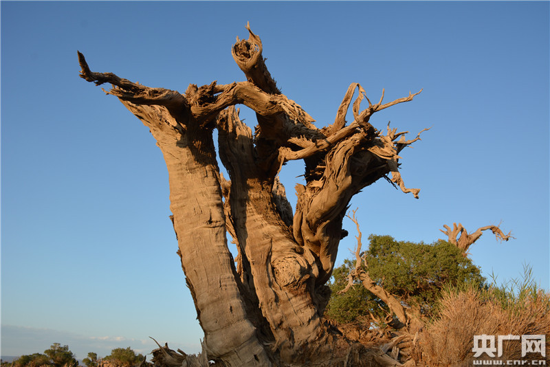 “看,多壯觀!雖然長(zhǎng)在戈壁灘,卻活出了生命不屈的精氣神!”